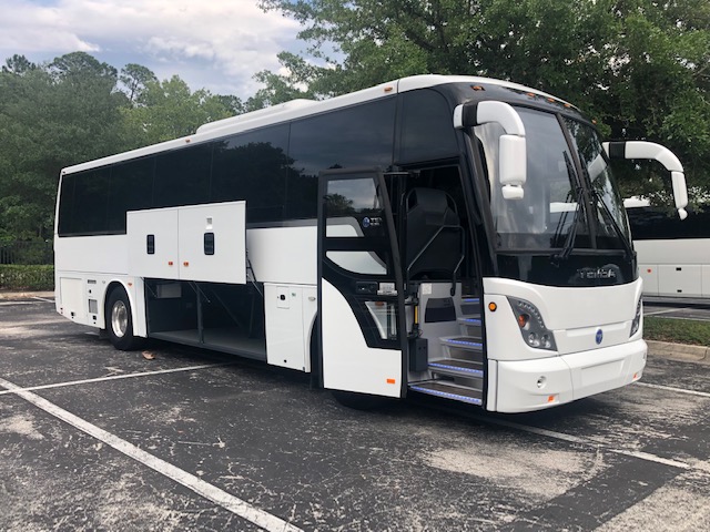 Luggage, wifi, LCD, DVD, USB, 120V, Restroom, GPS Tracking, DriveCam.